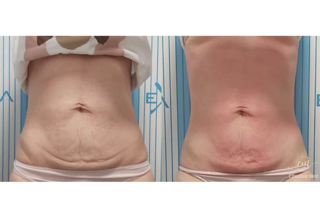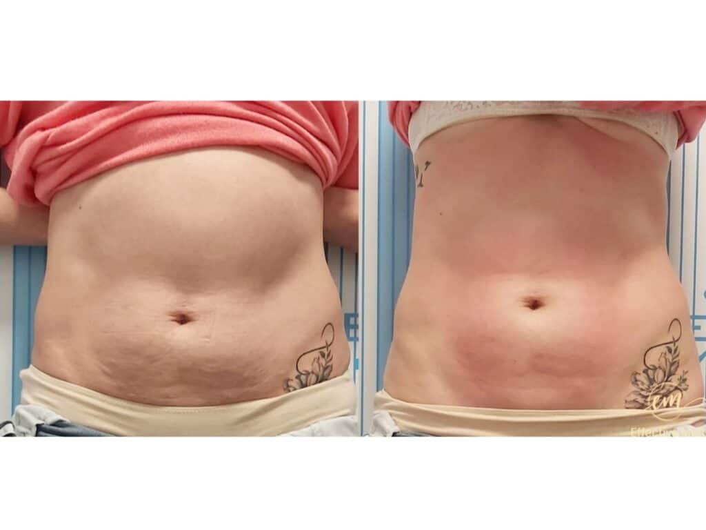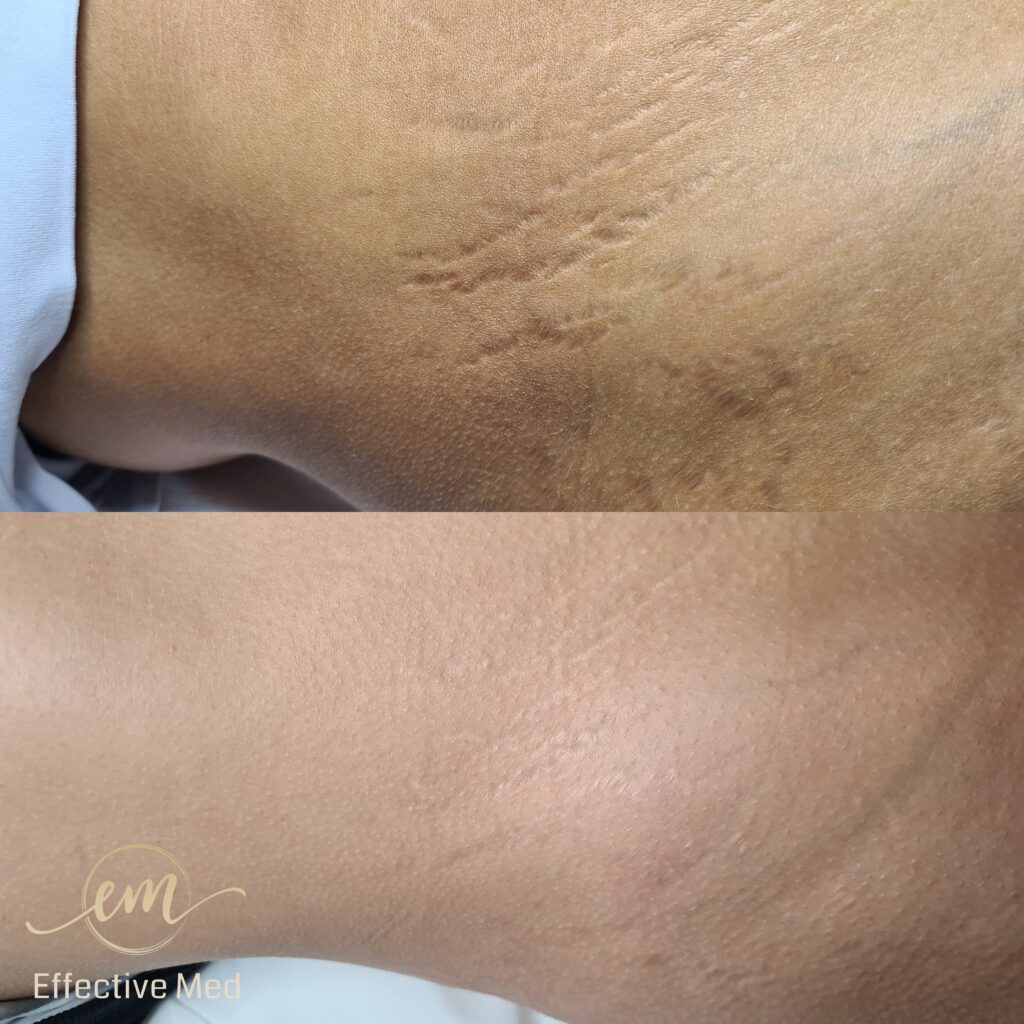 Redukcja blizn i rozstępów: Wyraźne spłycenie nierówności oraz zmniejszenie widoczności blizn potrądzikowych.