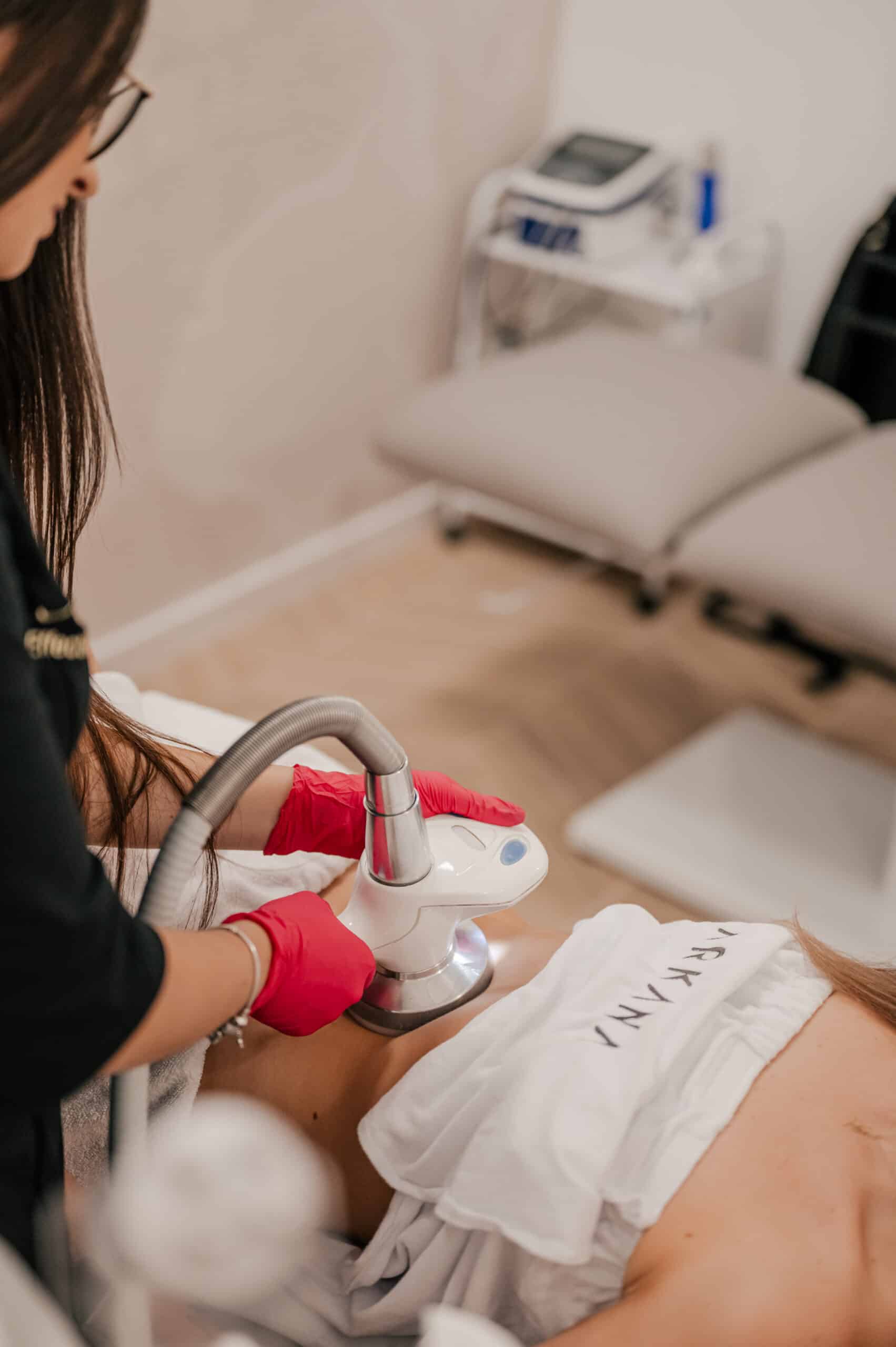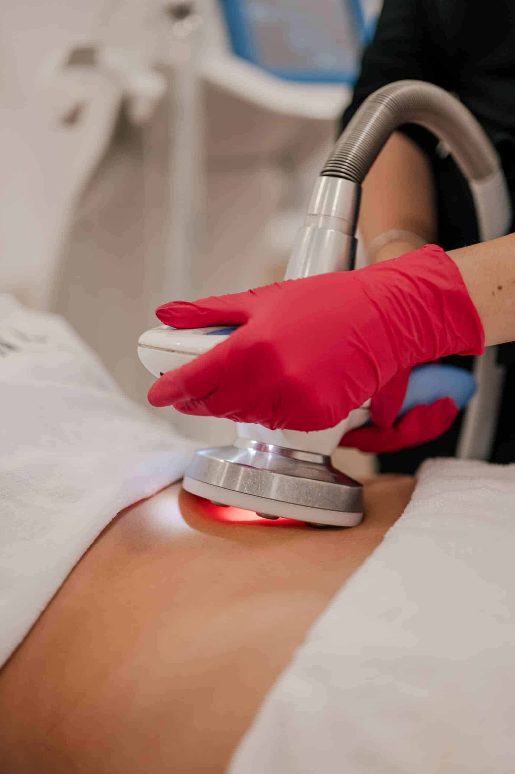 Laseroterapia + elektroporacja. Niezwykle ważny etap zabiegu o działaniu silnie LIPOLITYCZNYM. Głównie bazujemy na najsilniejszym preparacie – fosfatydylocholinie (najmocniejsza substancja „ROZPUSZCZAJĄCA” tkankę tłuszczową).