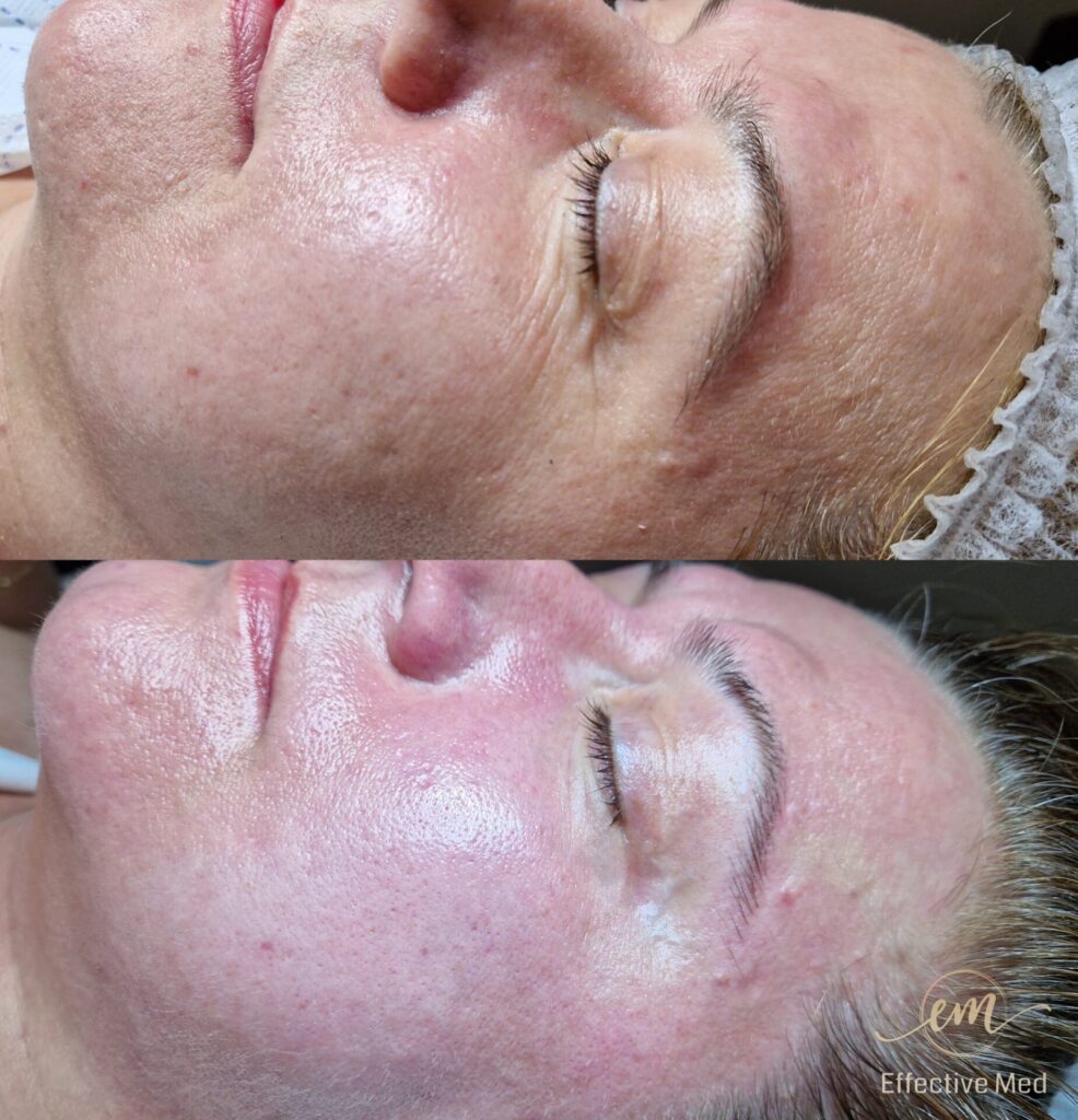 • Zwężenie porów i wyrównanie tekstury: Skóra staje się jednolita i gładka.