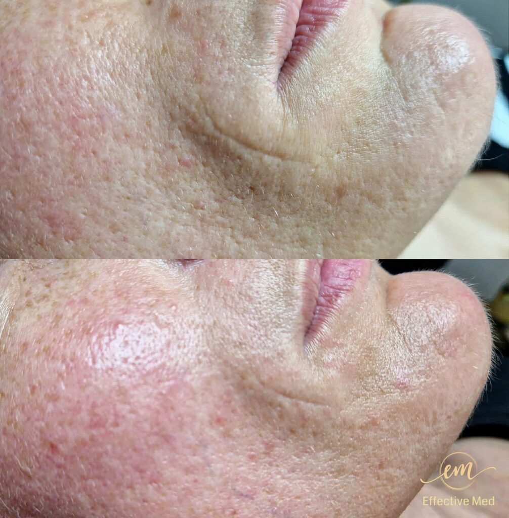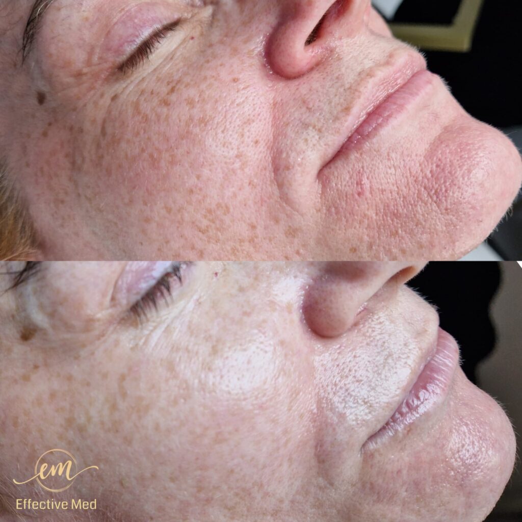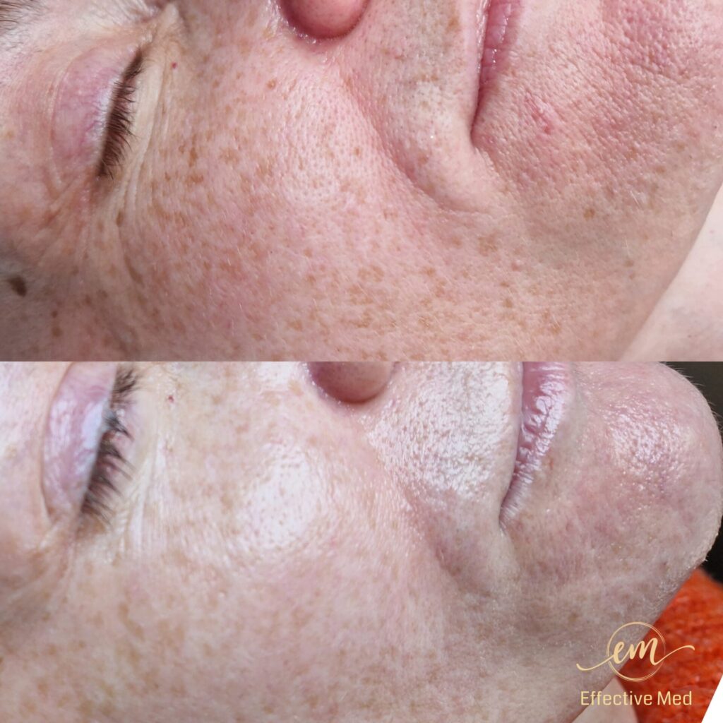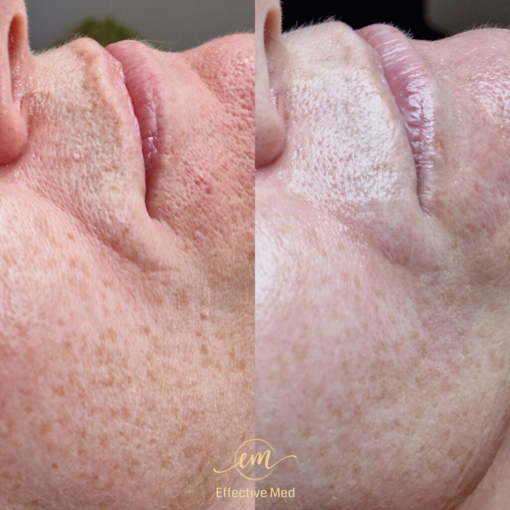 • Zwężenie porów i wyrównanie tekstury: Skóra staje się jednolita i gładka.