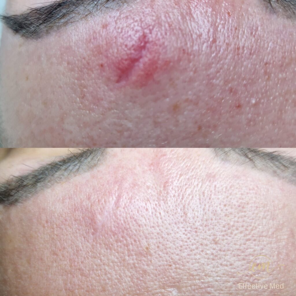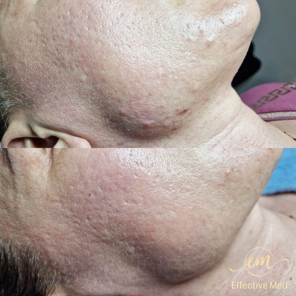 • Redukcja blizn (potrądzikowych i pooperacyjnych): Wyraźne spłycenie i wygładzenie nierówności.